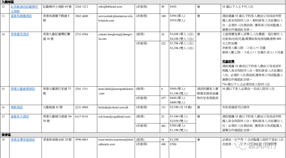 Cm+壹棠酒店及服務式公寓 地址:香港上環干諾道西 16 號 電話:3560 6738. 華大盛品酒店 地址:德輔道西 308 號 電話:3410 3333.